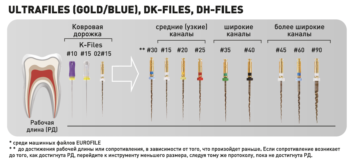 файл F25/.02 и F30/.02 не препарирует дентин, а обрабатывает оставшиеся не очищенными участки канала скоблящими движениями, а создаваемая им турбулентность повышает эффективность ирриганта - это позволяет обрабатывать большую площадь поверхности дентинных стенок, эффективно удаляя биопленку; конусность металлического сердечника 0%